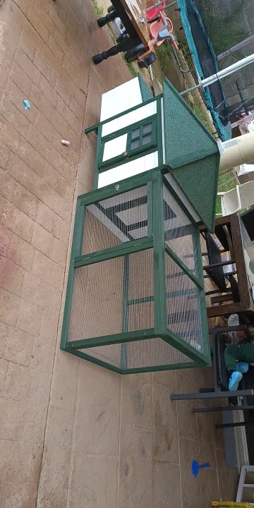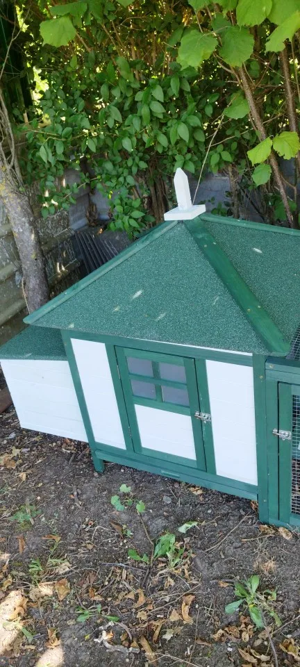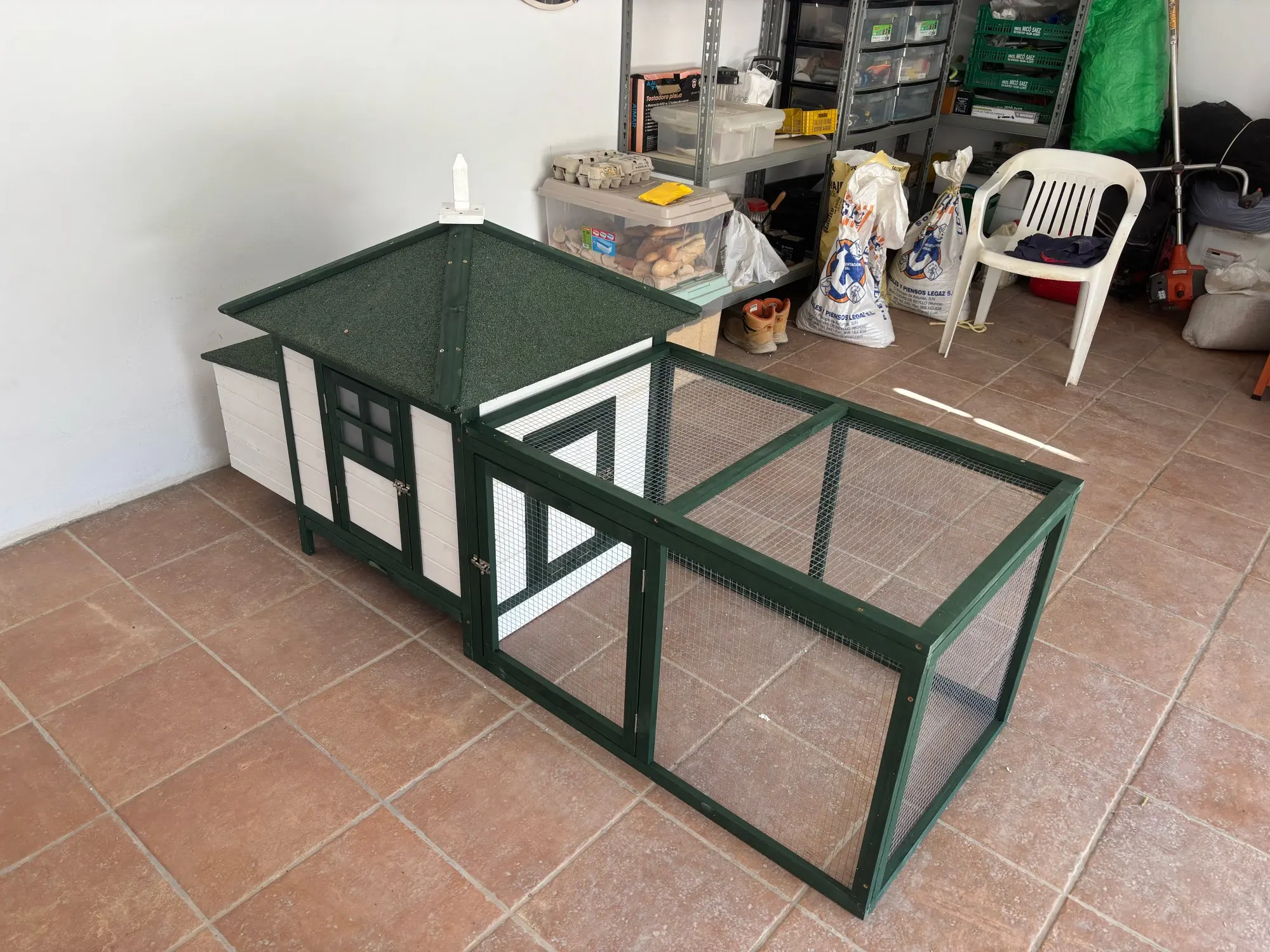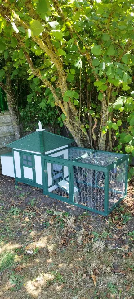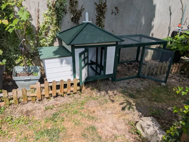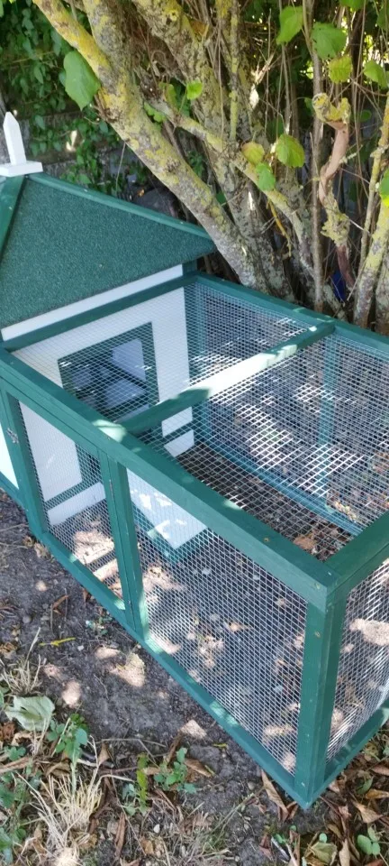 Le parc est équipé d’un grillage maillé serré fixé sur un cadre en bois. Pour une protection optimale contre les renards et fouines, nous recommandons d’enterrer un retour de grillage sur 20–30 cm autour de l’enclos et d’ajouter des verrous supplémentaires si votre terrain est exposé.