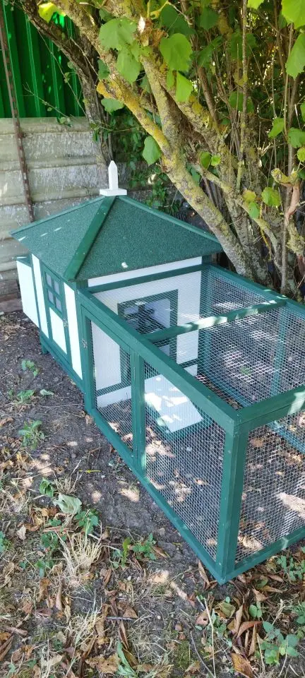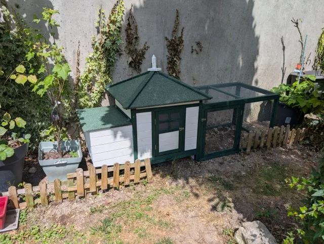 Ce poulailler convient pour 2 à 4 poules selon la taille des races (2–3 poules grandes races, 3–4 poules naines). La maisonnette offre environ 0,4 m² et l’enclos attenant environ 0,6 m², de quoi leur laisser marcher entre deux sorties au jardin.